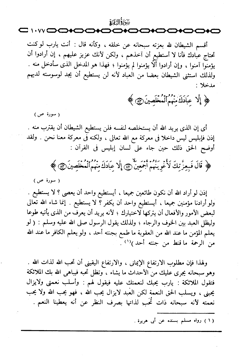 ولهذا فإن مطلوب الارتفاع الإيماني، والارتفاع اليقيني أن تحب الله لذات الله. وهو سبحانه يجري عليك من الأحداث ما يشاء، وتظل تحبه فيباهي الله بك الملائكة فتقول الملائكة: يا رب يحبك لنعمتك عليه فيقول لهم: وأسلب نعمتي ولا يزال يحبني، ويسلب الحق النعمة لكن العبد لا يزال يحب الله، فهو يحب الله ولا يحب نعمته لأنه سبحانه ذات تحب لذاتها بصرف النظر عن أنه يعطينا النعم.