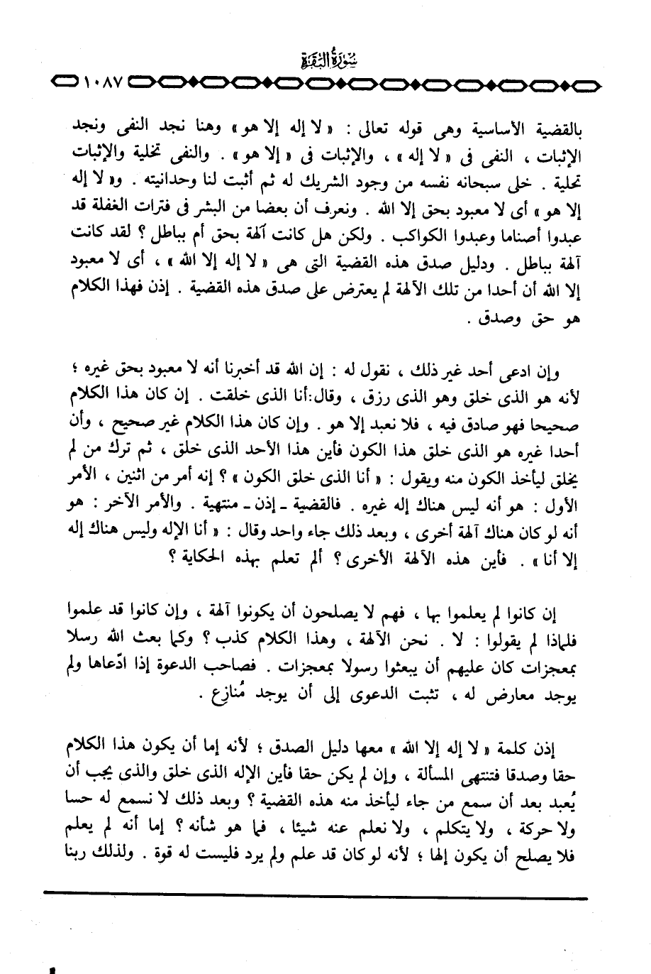 وإن ادعى أحد غير ذلك، نقول له: إن الله قد أخبرنا أنه لا معبود بحق غيره؛ لأنه هو الذي خلق وهو الذي رزق، وقال: أنا الذي خلقت. إن كان هذا الكلام صحيحاً فهو صادق فيه، فلا نعبد إلا هو. وإن كان هذا الكلام غير صحيح، وأن أحداً غيره هو الذي خلق هذا الكون فأين هذا الأحد الذي خلق، ثم ترك من لم يخلق ليأخذ الكون منه ويقول: «أنا الذي خلق الكون» ؟ إنه أمر من اثنين، الأمر الأول: هو أنه ليس هناك إله غيره. فالقضية إذن منتهية. والأمر الآخر: هو أنه لو كان هناك آلهة أخرى، وبعد ذلك جاء واحد وقال: «أنا الإله وليس هناك إله إلا أنا» .