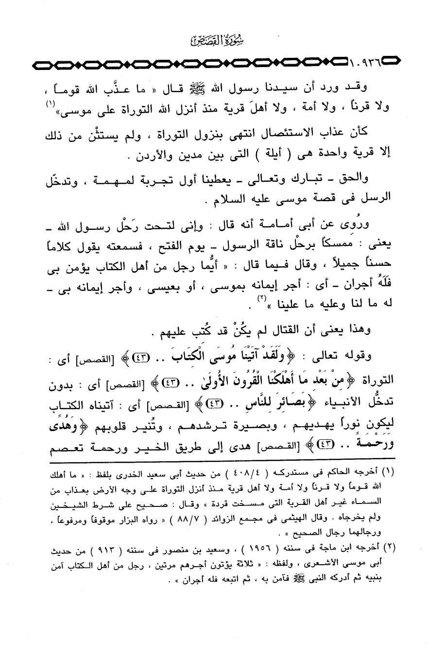 وقد ورد أن سيدنا رسول الله صَلَّى اللَّهُ عَلَيْهِ وَسَلَّم َ قال «ما عذَّب الله قوماً ولا قرناً، ولا أمة، ولا أهلَ قرية منذ أنزل الله التوراة على موسى» .