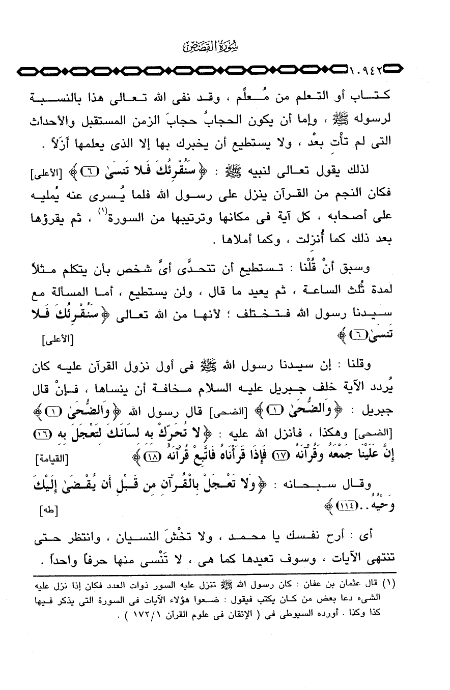 لذلك يقول تعالى لنبيه صَلَّى اللَّهُ عَلَيْهِ وَسَلَّم َ: {سَنُقْرِئُكَ فَلاَ تنسى} [الأعلى: 6] فكان النجم من القرآن ينزل على رسول الله فلما يُسرى عنه يُمليه على أصحابه، كل آية في مكانها وترتيبها من السورة، ثم يقرؤها بعد ذلك كما أُنزلت، وكما أملاها.