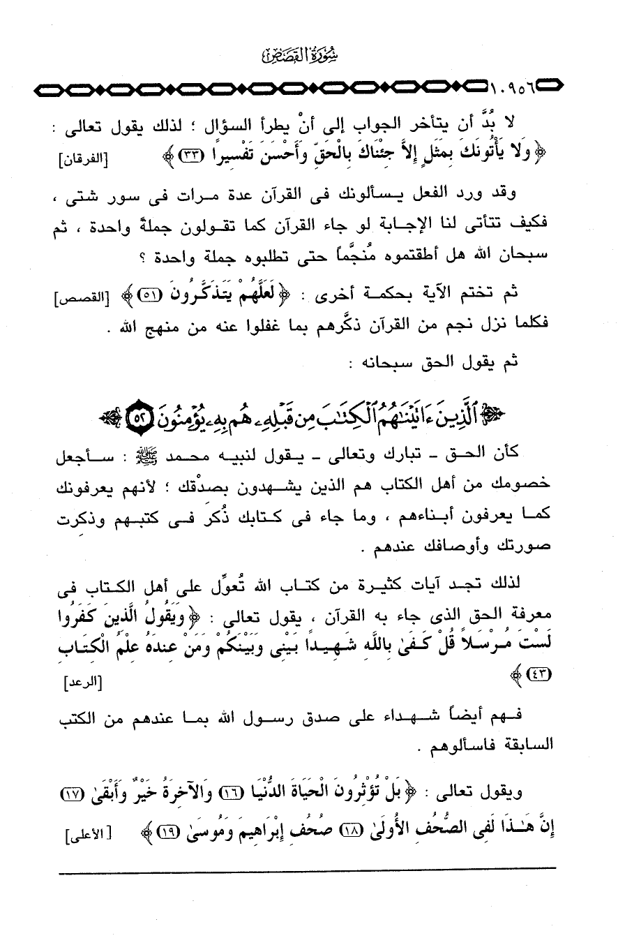 وقد ورد الفعل يسألونك في القرآن عدة مرات في سور شتى، فكيف تتأتى لنا الإجابة لو جاء القرآن كما تقولون جملة واحدة، ثم سبحان الله هل اطقتموه مُنجمَّاً حتى تطلبوه جملة واحدة؟