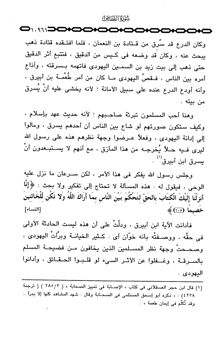 وجلس رسول الله يفكر في هذا الأمر، لكن سرعان ما نزل عليه الوحي، فيقول له: هذه المسألة لا تحتاج إلى تفكير ولا بحث: {إِنَّآ أَنْزَلْنَا إِلَيْكَ الكتاب بالحق لِتَحْكُمَ بَيْنَ الناس بِمَآ أَرَاكَ الله وَلاَ تَكُنْ لِّلْخَآئِنِينَ خَصِيماً} [النساء: 105] .