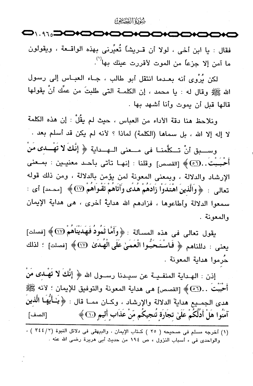 ونلاحظ هنا دقة الأداء من العباس، حيث لم يقُلْ: إن هذه الكلمة لا إله إلا الله، بل سماها (الكلمة) لماذا؟ لأنه لم يكن قد أسلم بعد.