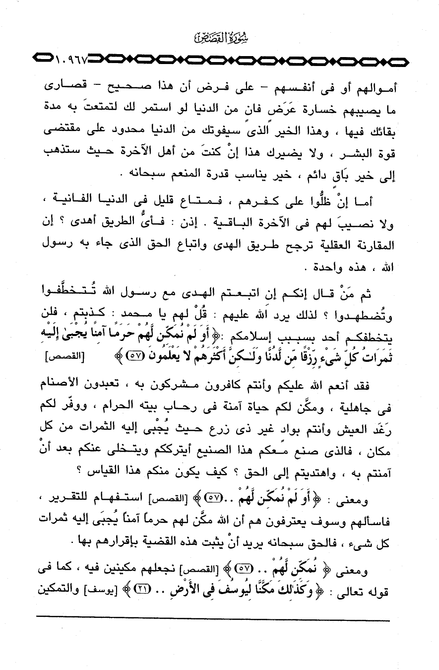 ثم مَنْ قال إنكم إن اتبعتم الهدى مع رسول الله تُتخطَّفوا وتُضطهدوا؟ لذلك يرد الله عليهم: قُلْ لهم يا محمد: كذبتم، فلن يتخطفكم أحد بسبب إسلامكم {أَوَلَمْ نُمَكِّن لَّهُمْ حَرَماً آمِناً يجبى إِلَيْهِ ثَمَرَاتُ كُلِّ شَيْءٍ رِّزْقاً مِّن لَّدُنَّا ولكن أَكْثَرَهُمْ لاَ يَعْلَمُونَ} [القصص: 57] .