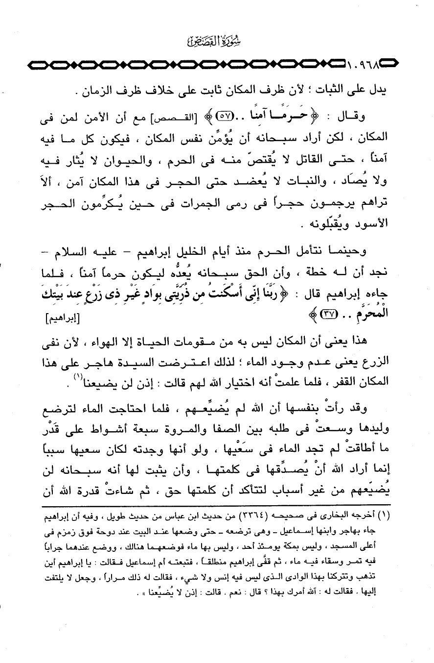 هذا يعني أن المكان ليس به من مقومات الحياة إلا الهواء، لأن نفي الزرع يعني عدم وجود الماء؛ لذلك اعترضت السيدة هاجر على هذا المكان القفر، فلما علمتْ أنه اختيار الله لهم قالت: إذن لن يضيعنا.