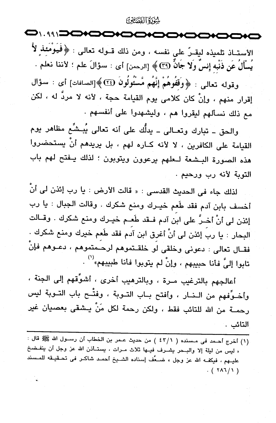 الأستاذ تلميذه ليقرّ على نفسه، ومن ذلك قوله تعالى: {فَيَوْمَئِذٍ لاَّ يُسْأَلُ عَن ذَنبِهِ إِنسٌ وَلاَ جَآنٌّ} [الرحمن: 39] أي: سؤالَ علم؛ لأننا نعلم.