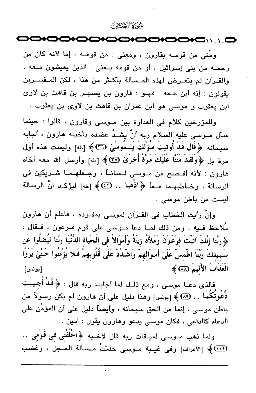 ومُني من قومه بقارون، ومعنى: من قومه، إما لأنه كان من رحمه من بني إسرائيل، أو من قومه يعني: الذين يعيشون معه. والقرآن لم يتعرض لهذه المسألة بأكثر من هذا، لكن المفسرين يقولون: إنه ابن عمه. فهو: قارون بن يصهر بن قاهث بن لاوي ابن يعقوب وموسى هو ابن عمران بن قاهث بن لاوي بن يعقوب.