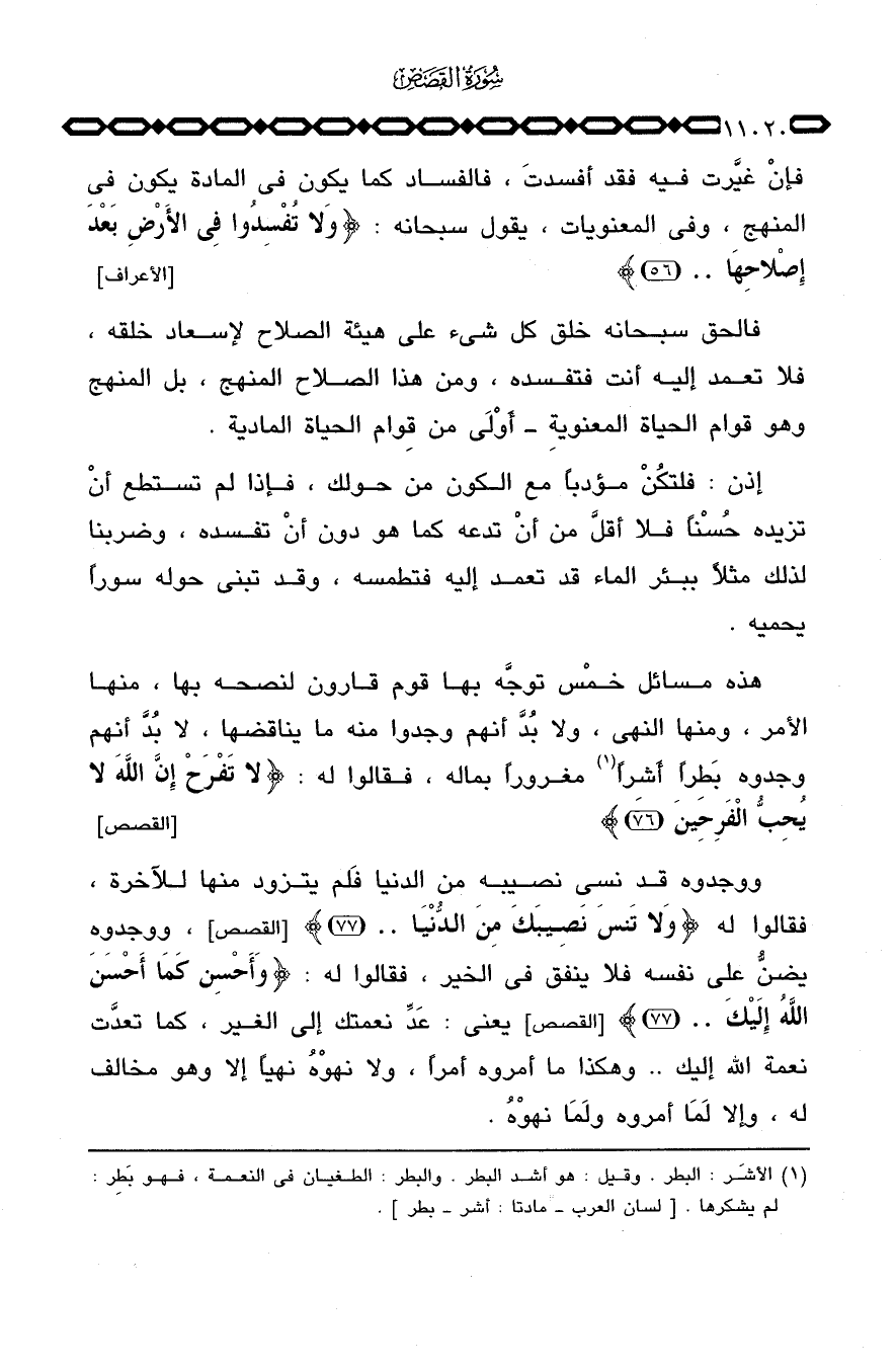 فالحق سبحانه خلق كل شيء على هيئة الصلاح لإسعاد خلقه، فلا تعمد إليه أنت فتفسده، ومن هذا الصلاح المنهج، بل المنهج وهو قوام الحياة المعنوية - أَوْلَى من قِوام الحياة المادية.