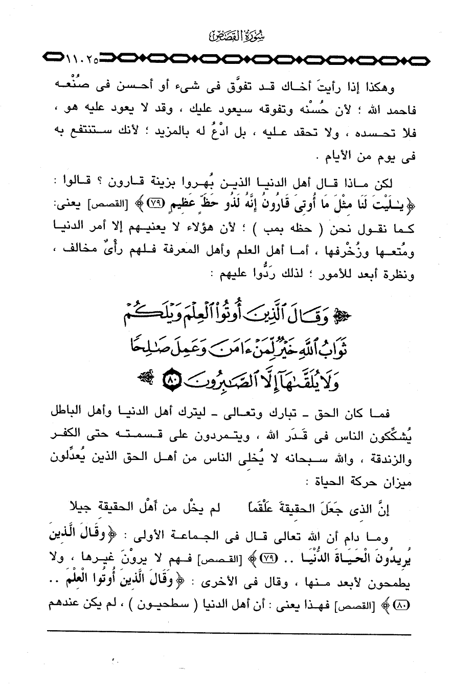 وما دام أن الله تعالى قال في الجماعة الأولى: {قَالَ الذين يُرِيدُونَ الحياة الدنيا ... } [القصص: 79] فهم لا يروْنَ غيرها، ولا يطمحون لأبعد منها، وقال في الأخرى: {وَقَالَ الذين أُوتُواْ العلم ... } [القصص: 80] فهذا يعني: أن أهل الدنيا (سطحيون) ، لم يكن عندهم