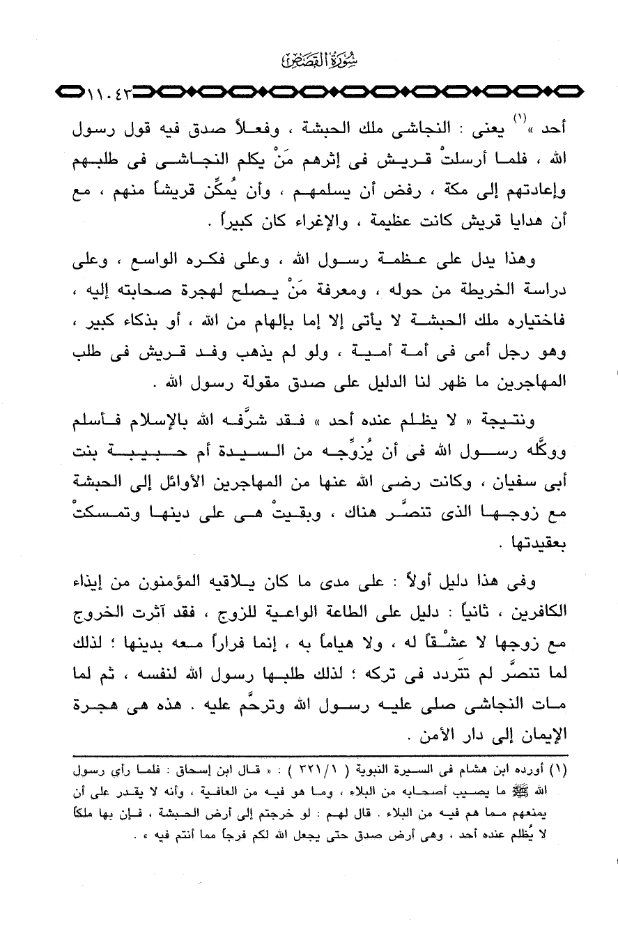 وفي هذا دليل أولاً: على مدى ما كان يلاقيه المؤمنون من إيذاء الكافرين، ثانياً: دليل على الطاعة الواعية للزوج، فقد آثرت الخروج مع زوجها لا عِشْقاً له، ولا هياماً به، إنما فراراً معه بدينها؛ لذلك لما تنصَّر لم تتردد في تركه؛ لذلك طلبها رسول الله لنفسه، ثم لما مات النجاشي صلى عليه رسول الله وترحَّم عليه. هذه هي هجرة الإيمان إلى دار الأمن.
