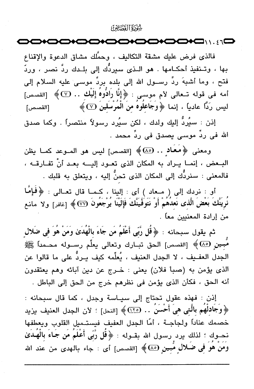 فالذي فرض عليك مشقة التكاليف، وحمَّلك مشاق الدعوة والإقناع بها، وتنفيذ أحكامها، هو الذي سيردُّك إلى بلدك ردَّ نصر، وردّ فتح، وما أشبهَ ردِّ رسول الله إلى بلده بردِّ موسى عليه السلام إلى أمه في قوله تعالى لأم موسى: {إِنَّا رَآدُّوهُ إِلَيْكِ ... } [القصص: 7] ليس رَدَّاً عادياً، إنما {وَجَاعِلُوهُ مِنَ المرسلين} [القصص: 7] .