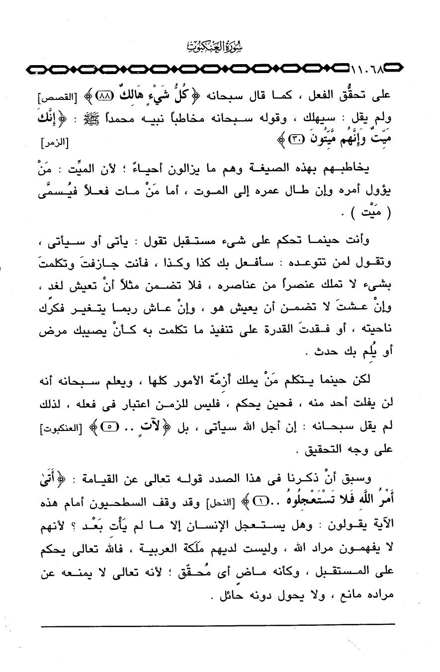 على تحقُّق الفعل، كما قال سبحانه: {كُلُّ شَيْءٍ هَالِكٌ} [القصص: 88] ولم يقل: سيهلك، وقوله سبحانه مخاطباً نبيه محمداً صَلَّى اللَّهُ عَلَيْهِ وَسَلَّم َ: {إِنَّكَ مَيِّتٌ وَإِنَّهُمْ مَّيِّتُونَ} [الزمر: 30] .