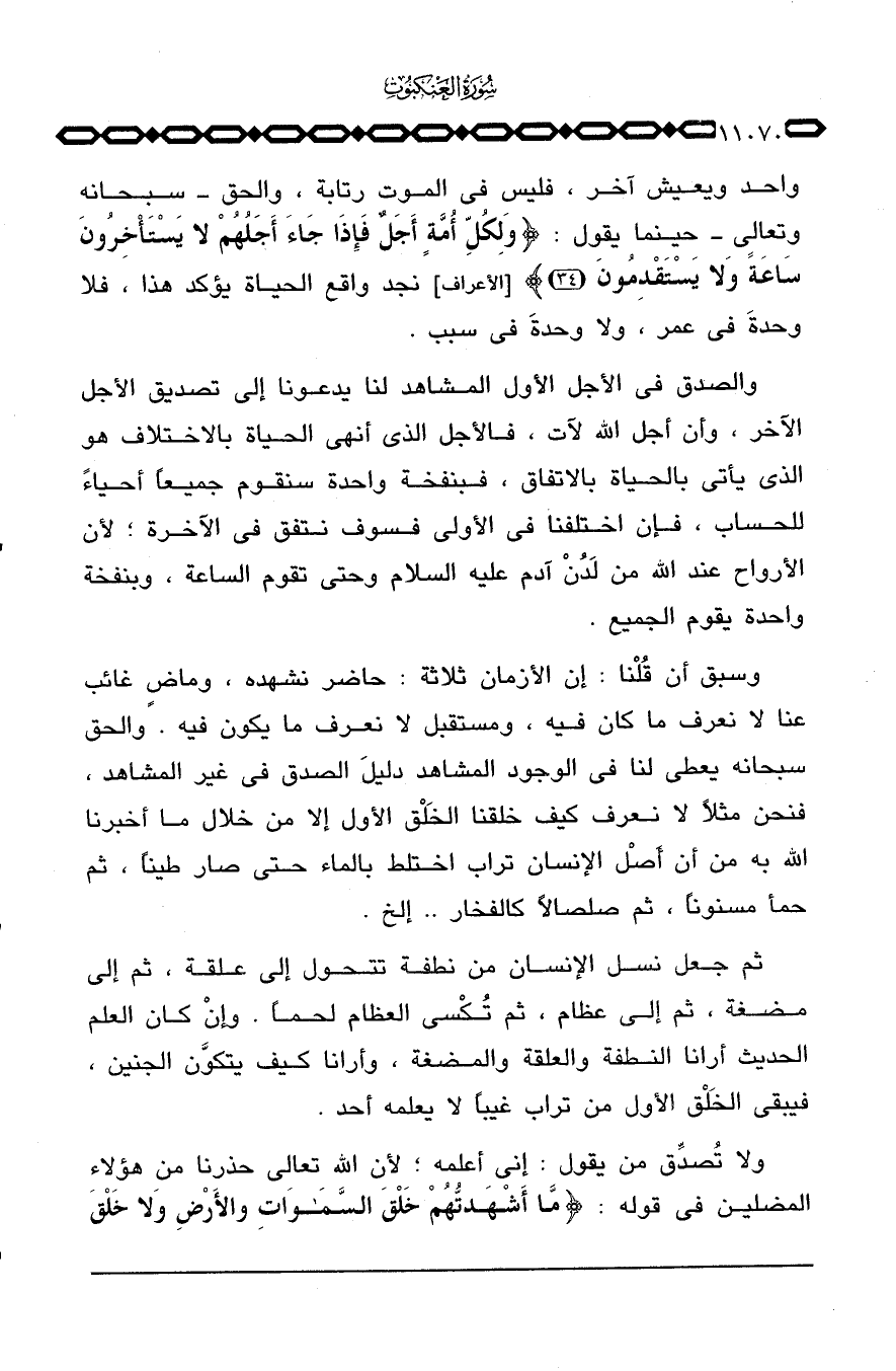 والصدق في الأجل الأول المشاهد لنا يدعونا إلى تصديق الأجل الآخر، وأن أجل الله لآت، فالأجل الذي أنهى الحياة بالاختلاف هو الذي يأتي بالحياة بالاتفاق، فبنفخة واحدة سنقوم جميعاً أحياءً للحساب، فإن اختلفنا في الأولى فسوف نتفق في الآخرة؛ لأن الأرواح عند الله من لَدُنْ آدم عليه السلام وحتى تقوم الساعة، وبنفخة واحدة يقوم الجميع.