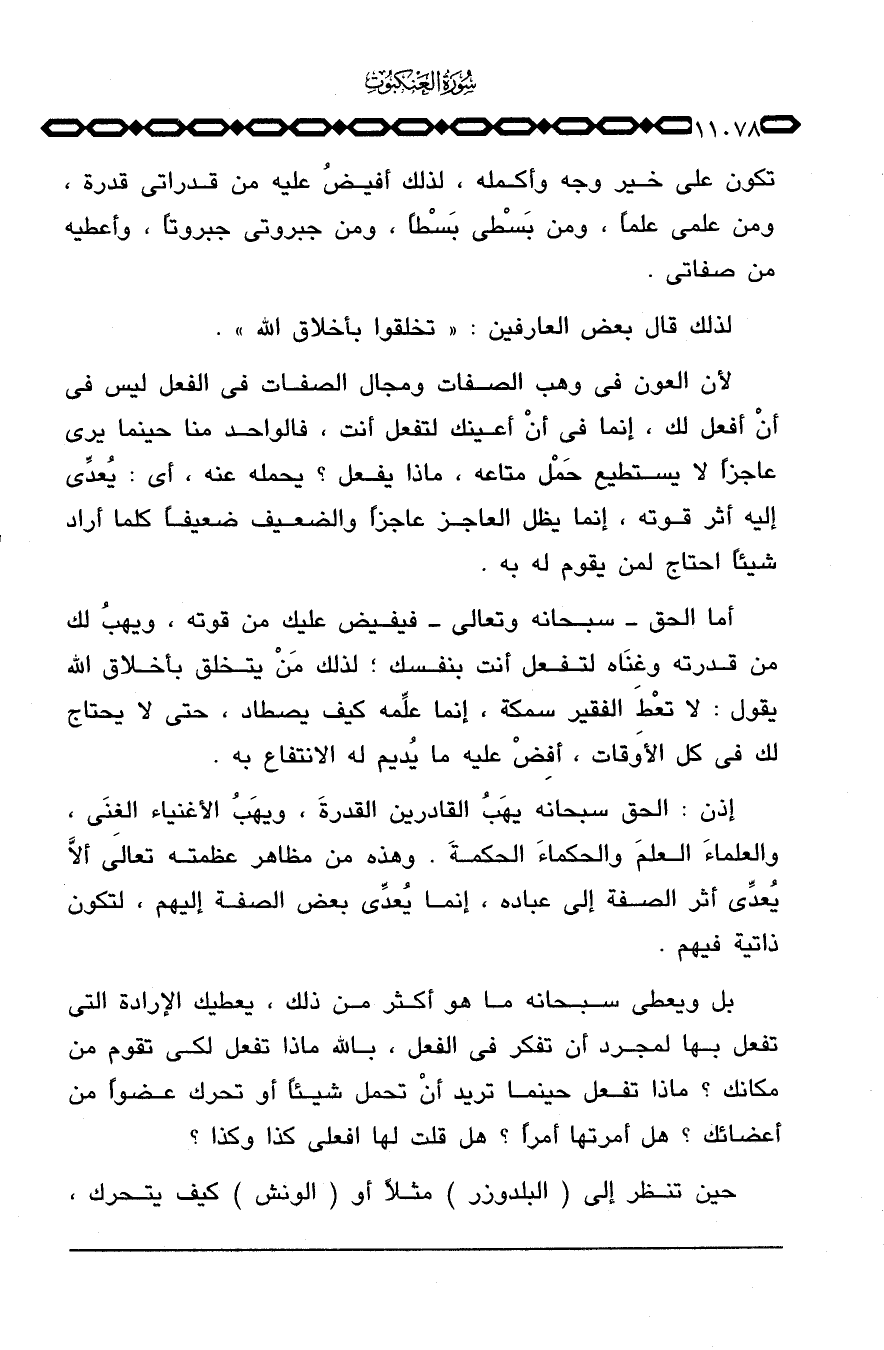 تكون على خير وجه وأكمله، لذلك أفيضُ عليه من قدراتي قدرة، ومن علمي علماً، ومن بَسْطي بَسْطاً، ومن جبروتي جبروتاً، وأعطيه من صفاتي.