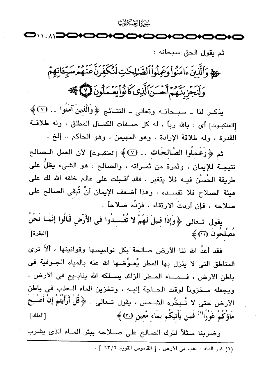 يذكر لنا - سبحانه وتعالى - النتائج {والذين آمَنُواْ ... } [العنكبوت: 7] أي: بالله رباً، له كل صفات الكمال المطلق، وله طلاقة القدرة، وله طلاقة الإرادة، وهو المهيمن، وهو الحاكم. . إلخ.