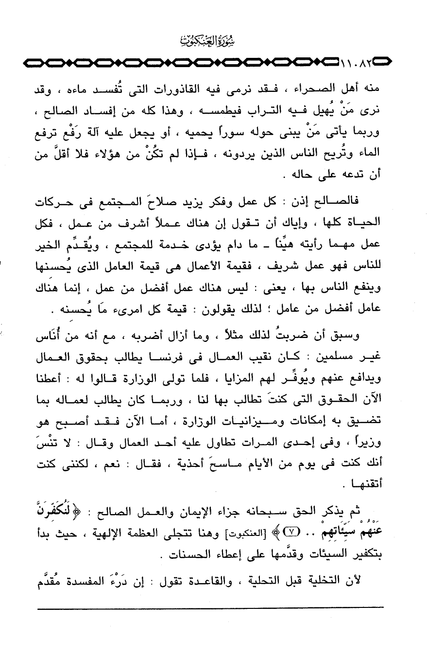 منه أهل الصحراء، فقد نرمي فيه القاذورات التي تُفسد ماءه، وقد نرى مَنْ يُهيل فيه التراب فيطمسه، وهذا كله من إفساد الصالح، وربما يأتي مَنْ يبني حوله سوراً يحميه، أو يجعل عليه آلة رَفْع ترفع الماء وتُريح الناس الذين يردونه، فإذا لم تكُنْ من هؤلاء فلا أقلَّ من أن تدعه على حاله.