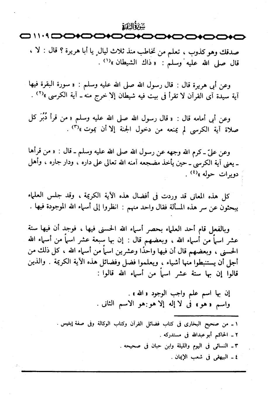 كل هذه المعاني قد وردت في أفضال هذه الآية الكريمة، وقد جلس العلماء يبحثون عن سر هذه المسألة فقال واحد منهم: انظروا إلى أسماء الله الموجودة فيها.