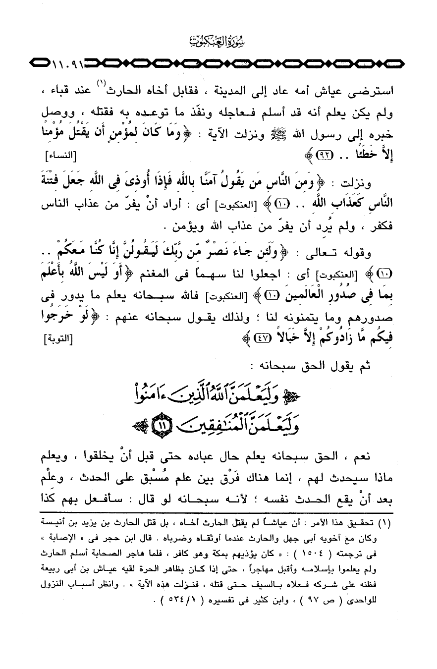 استرضى عياش أمه عاد إلى المدينة، فقابل أخاه الحارث عند قباء، ولم يكن يعلم أنه قد أسلم فعاجله، ونفّذ ما توعده به فقتله، ووصل خبره إلى رسول الله صَلَّى اللَّهُ عَلَيْهِ وَسَلَّم َ ونزلت الآية: {وَمَا كَانَ لِمُؤْمِنٍ أَن يَقْتُلَ مُؤْمِناً إِلاَّ خَطَئاً ... } [النساء: 92] .