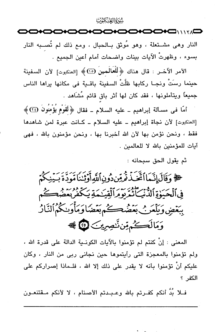 الأمر الآخر: قال هناك {لِّلْعَالَمِينَ} [العنكبوت: 15] لأن السفينة حينما رسَتْ ونجا ركابها ظلَّتْ باقية في مكانها يراها الناس جميعاً ويتأملونها، فقد كان لها أثر باقٍ قائم مُشَاهد.