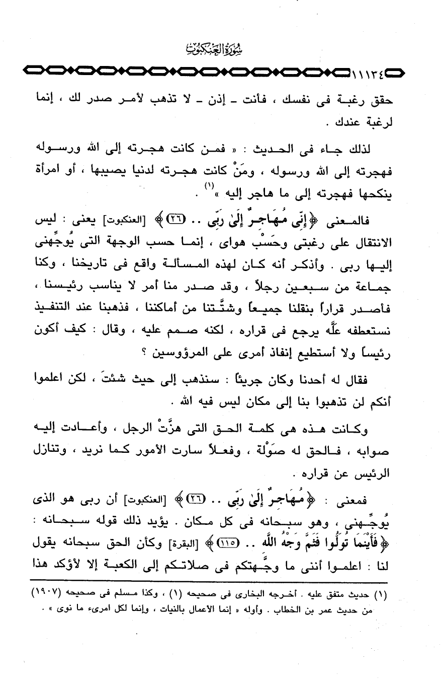 لذلك جاء في الحديث: «فمن كانت هجرته إلى الله ورسوله فهجرته إلى الله ورسوله، ومَنْ كانت هجرته لدنيا يصيبها، أو امرأة ينكحها فهجرته إلى ما هاجر إليه» .