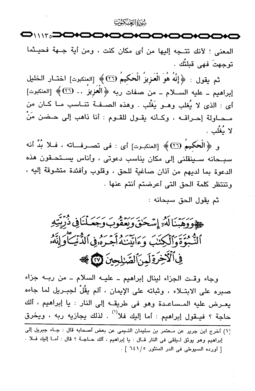 وجاء وقت الجزاء لينال إبراهيم - عليه السلام - من ربه جزاء صبره على الابتلاء، وثباته على الإيمان، ألم يقُلْ لجبريل لما جاءه يعرض عليه المساعدة وهو في طريقه إلى النار: يا إبراهيم، ألك حاجة؟ فيقول إبراهيم: أما إليك فلا. لذلك يجازيه ربه، ويخرق