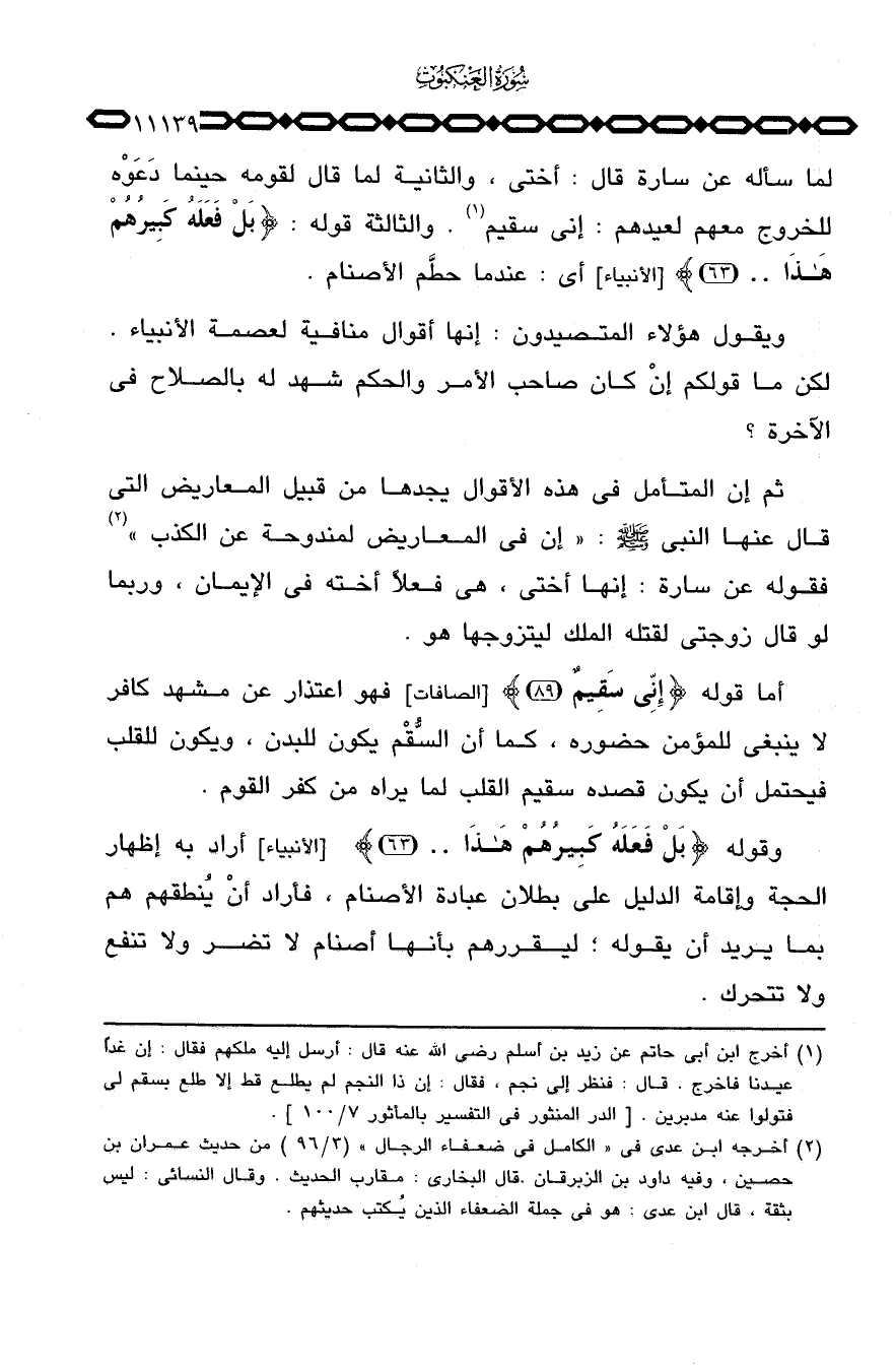أما قوله {إِنِّي سَقِيمٌ ... } [الصافات: 89] فهو اعتذار عن مشهد كافر لا ينبغي للمؤمن حضوره، كما أن السِّقْم يكون للبدن، ويكون للقلب فيحتمل أن يكون قصده سقيم القلب لما يراه من كفر القوم.