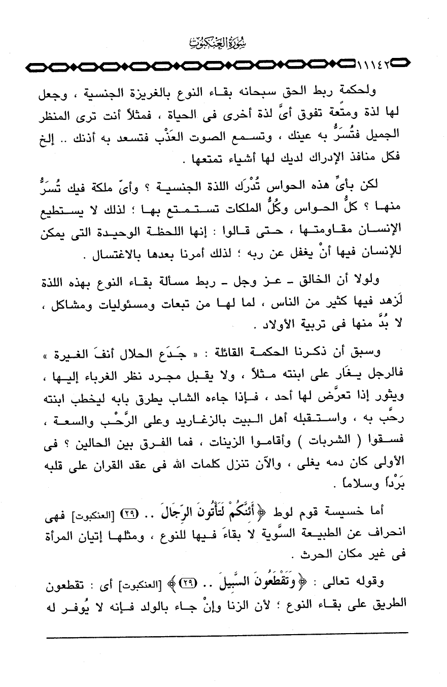 ولولا أن الخالق - عَزَّ وَجَلَّ - ربط مسألة بقاء النوع بهذه اللذة لَزهد فيها كثير من الناس، لما لها من تبعات ومسئوليات ومشاكل، لا بُدَّ منها في تربية الأولاد.