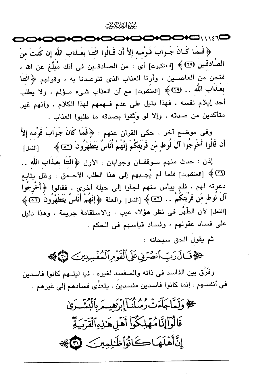 {فَمَا كَانَ جَوَابَ قَوْمِهِ إِلاَّ أَن قَالُواْ ائتنا بِعَذَابِ الله إِن كُنتَ مِنَ الصادقين} [العنكبوت: 29] أي: من الصادقين في أنك مُبلِّغ عن الله، فنحن من العاصين، وأَرِنا العذاب الذي تتوعدنا به، وقولهم {ائتنا بِعَذَابِ الله ... } [العنكبوت: 29] مع أن العذاب شيء مؤلم، ولا يطلب أحد إيلام نفسه، فهذا دليل على عدم فهمهم لهذا الكلام، وأنهم غير متأكدين من صدقه، وإلا لو وَثِقوا بصدقه ما طلبوا العذاب.