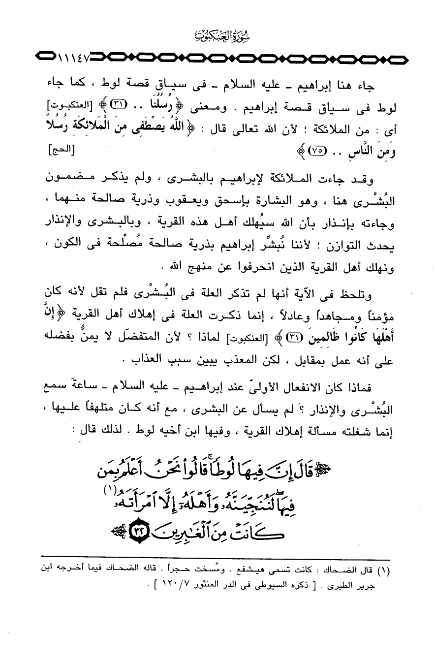 وقد جاءت الملائكة لإبراهيم بالبشرى، ولم يذكر مضمون البُشْرى هنا، وهو البشارة بإسحق ويعقوب وذرية صالحة منهما، وجاءته بإنذار بأن الله سيُهلك أهل هذه القرية، وبالبشرى والإنذار يحدث التوازن؛ لأننا نُبشِّر إبراهيم بذرية صالحة مُصْلحة في الكون، ونهلك أهل القرية الذين انحرفوا عن منهج الله.