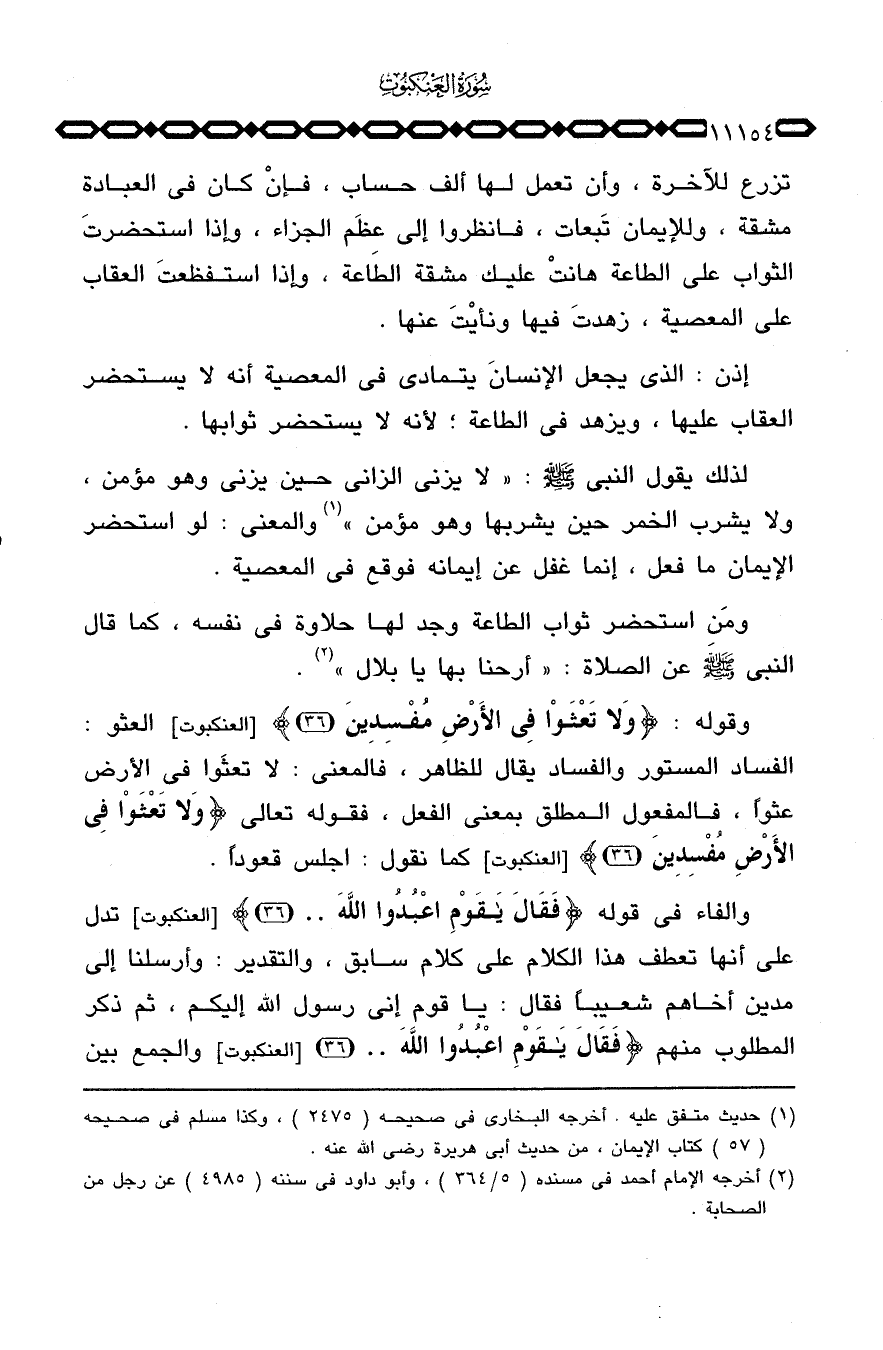 وقوله: {وَلاَ تَعْثَوْاْ فِي الأرض مُفْسِدِينَ} [العنكبوت: 36] العثو: الفساد المستور والفساد يقال للظاهر، فالمعنى: لا تعثَوا في الأرض عثواً، فالمفعول المطلق بمعنى الفعل، فقوله تعالى: {وَلاَ تَعْثَوْاْ فِي الأرض مُفْسِدِينَ} [العنكبوت: 36] كما نقول: اجلس قعوداً.