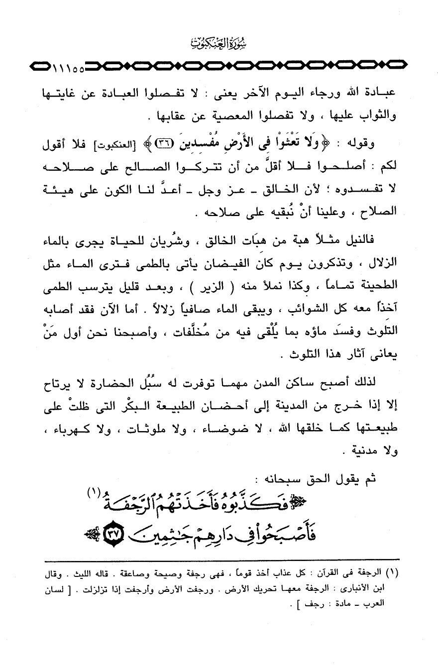 وقوله: {وَلاَ تَعْثَوْاْ فِي الأرض مُفْسِدِينَ} [العنكبوت: 36] فلا أقول لكم: أصلحوا فلا أقلَّ من أن تتركوا الصالح على صلاحه لا تفسدوه؛ لأن الخالق - عَزَّ وَجَلَّ - أعدَّ لنا الكون على هيئة الصلاح، وعلينا أنْ نُبقيه على صلاحه.