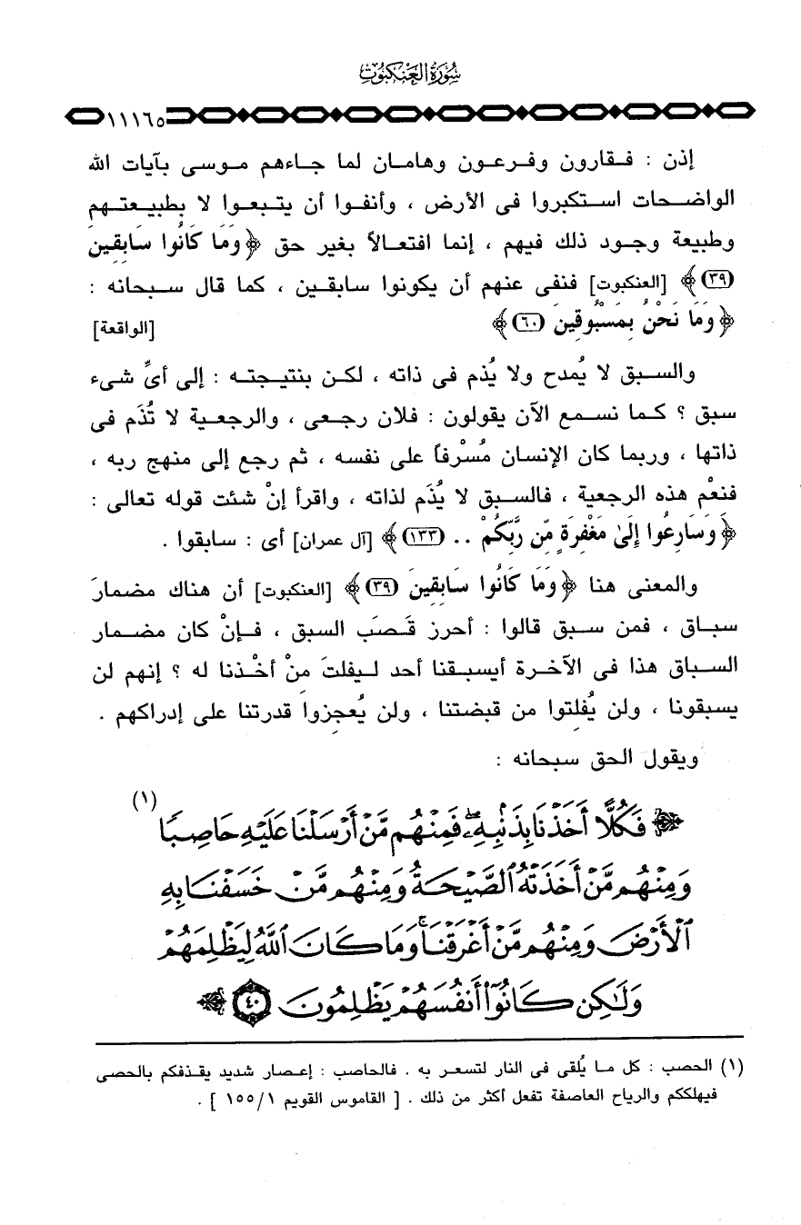 والمعنى هنا {وَمَا كَانُواْ سَابِقِينَ} [العنكبوت: 39] أن هناك مضمارَ سباق، فمن سبق قالوا: أحرز قَصَب السبق، فإنْ كان مضمار السباق هذا في الآخرة أيسبقنا أحد ليفلتَ من أخْذنا له؟ إنهم لن يسبقونا، ولن يُفلِتوا من قبضتنا، ولن يُعجِزوا قدرتنا على إدراكهم.