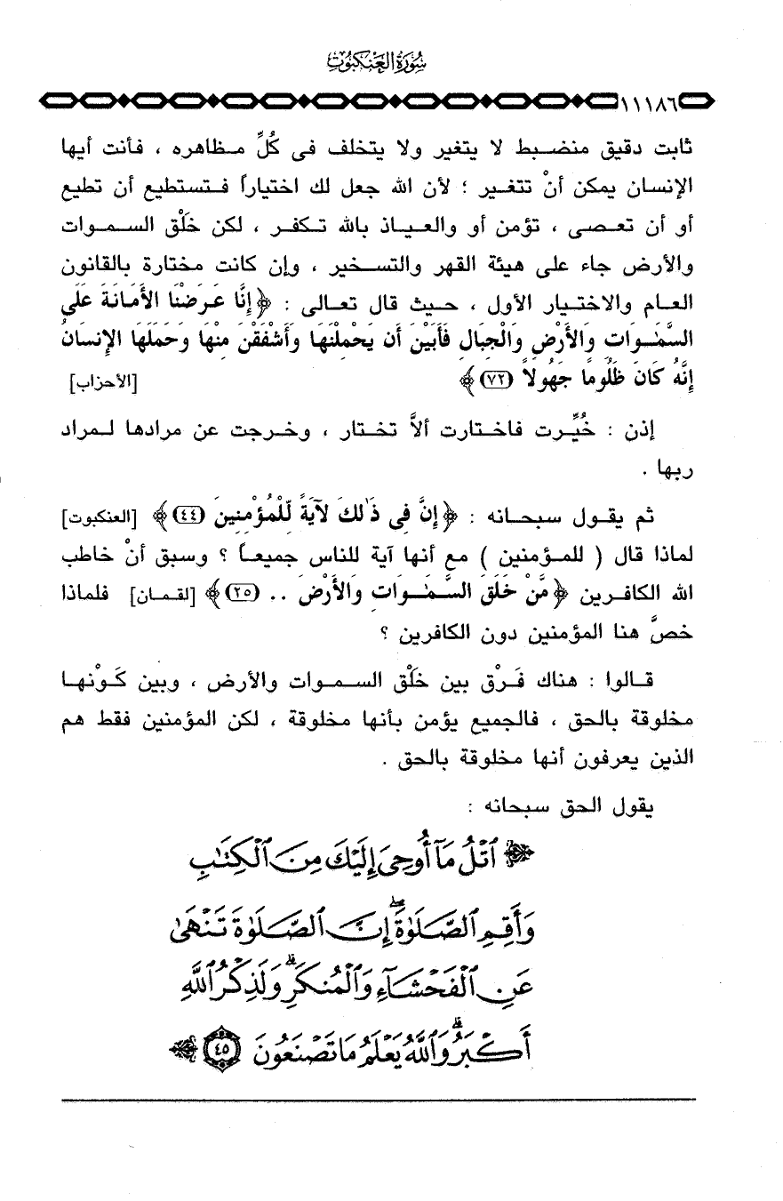 ثم يقول سبحانه: {إِنَّ فِي ذلك لآيَةً لِّلْمُؤْمِنِينَ} [العنكبوت: 44] لماذا قال (للمؤمنين) مع أنها آية للناس جميعاً؟ وسبق أنْ خاطب الله الكافرين {مَّنْ خَلَقَ السماوات والأرض ... } [لقمان: 25] فلماذا خصَّ هنا المؤمنين دون الكافرين؟