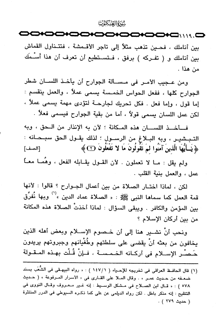 ونحب أنْ نشير هنا إلى أن خصوم الإسلام وبعض أهله الذين يخافون من بعثه أنْ يقضي على سلطتهم وطُغْيانهم وجبروتهم يريدون حَصْر الإسلام في أركانه الخمسة، فإنْ قُلْت بهذه المقولة لا