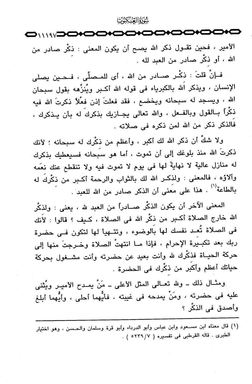 الأمير، فحين تقول ذكر الله يصح أن يكون المعنى: ذِكْر صادر من الله، أو ذِكْر صادر من العبد لله.
