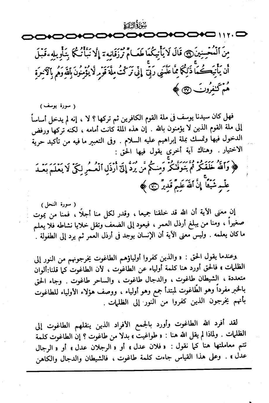 لقد أفرد الله الطاغوت وأورد بالجمع الأفراد الذين ينقلهم الطاغوت إلى الظلمات. ولماذا لم يقل الله هنا: «طواغيت» بدلا من طاغوت؟ إن الطاغوت كلمة تتم معاملتها هنا كما نقول: «فلان عدل» أو «الرجلان عدل» أو «الرجال عدل» . وعلى هذا القياس جاءت كلمة طاغوت، فالشيطان والدجال والكاهن