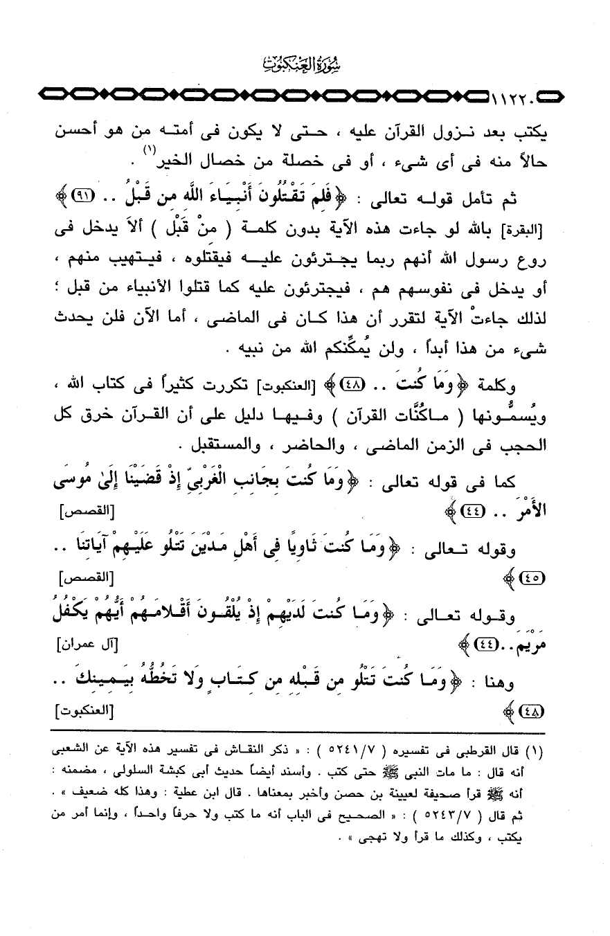 وكلمة {وَمَا كُنتَ ... } [العنكبوت: 48] تكررت كثيراً في كتاب الله، ويُسمُّونها في الزمن الماضي، والحاضر، والمستقبل.