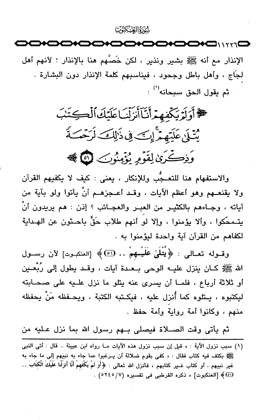 الإنذار مع أنه صَلَّى اللَّهُ عَلَيْهِ وَسَلَّم َ بشير ونذير، لكن خَصَّهم هنا بالإنذار، لأنهم أهل لِجَاج، وأهل باطل وجحود، فيناسبهم كلمة الإنذار دون البشارة ثم يقول الحق سبحانه: {أَوَلَمْ يَكْفِهِمْ أَنَّآ أَنزَلْنَا عَلَيْكَ الكتاب ... } .