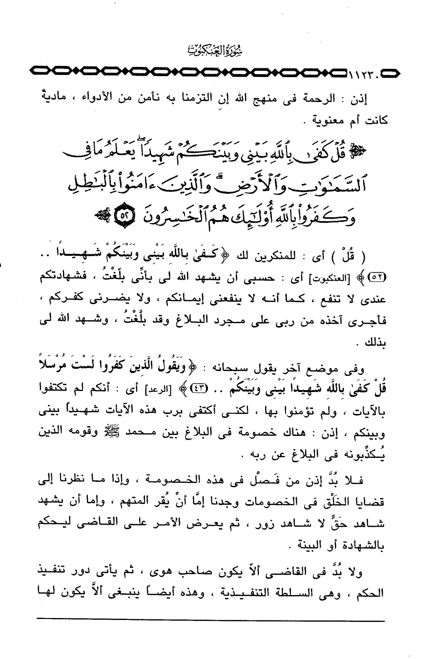 وفي موضع آخر يقول سبحانه: {وَيَقُولُ الذين كَفَرُواْ لَسْتَ مُرْسَلاً قُلْ كفى بالله شَهِيداً بَيْنِي وَبَيْنَكُمْ ... } [الرعد: 43] أي: أنكم لم تكتفوا بالآيات، ولم تؤمنوا بها، لكني أكتفي برب هذه الآيات شهيداً بيني وبينكم، إذن: هناك خصومة في البلاغ بين محمد صَلَّى اللَّهُ عَلَيْهِ وَسَلَّم َ وقومه الذين يُكذِّبونه في البلاغ عن ربه.