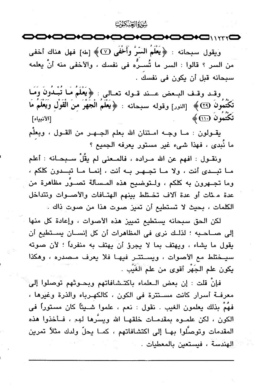 وقد وقف البعض عند قوله تعالى: {يَعْلَمُ مَا تُبْدُونَ وَمَا تَكْتُمُونَ} [النور: 29] وقوله سبحانه: {يَعْلَمُ الجهر مِنَ القول وَيَعْلَمُ مَا تَكْتُمُونَ} [الأنبياء: 110] .