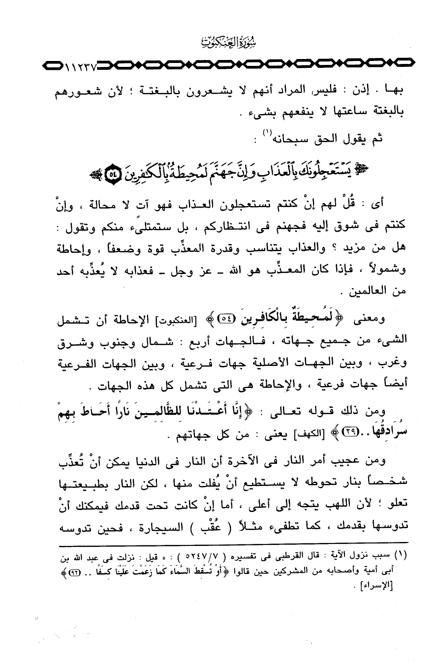 ومعنى {لَمُحِيطَةٌ بالكافرين} [العنكبوت: 54] الإحاطة أن تشمل الشيء من جميع جهاته، فالجهات أربع: شمال وجنوب وشرق وغرب، وبين الجهات الأصلية جهات فرعية، وبين الجهات الفرعية أيضاً جهت فرعية، والإحاطة هي التي تشمل كل هذه الجهات.