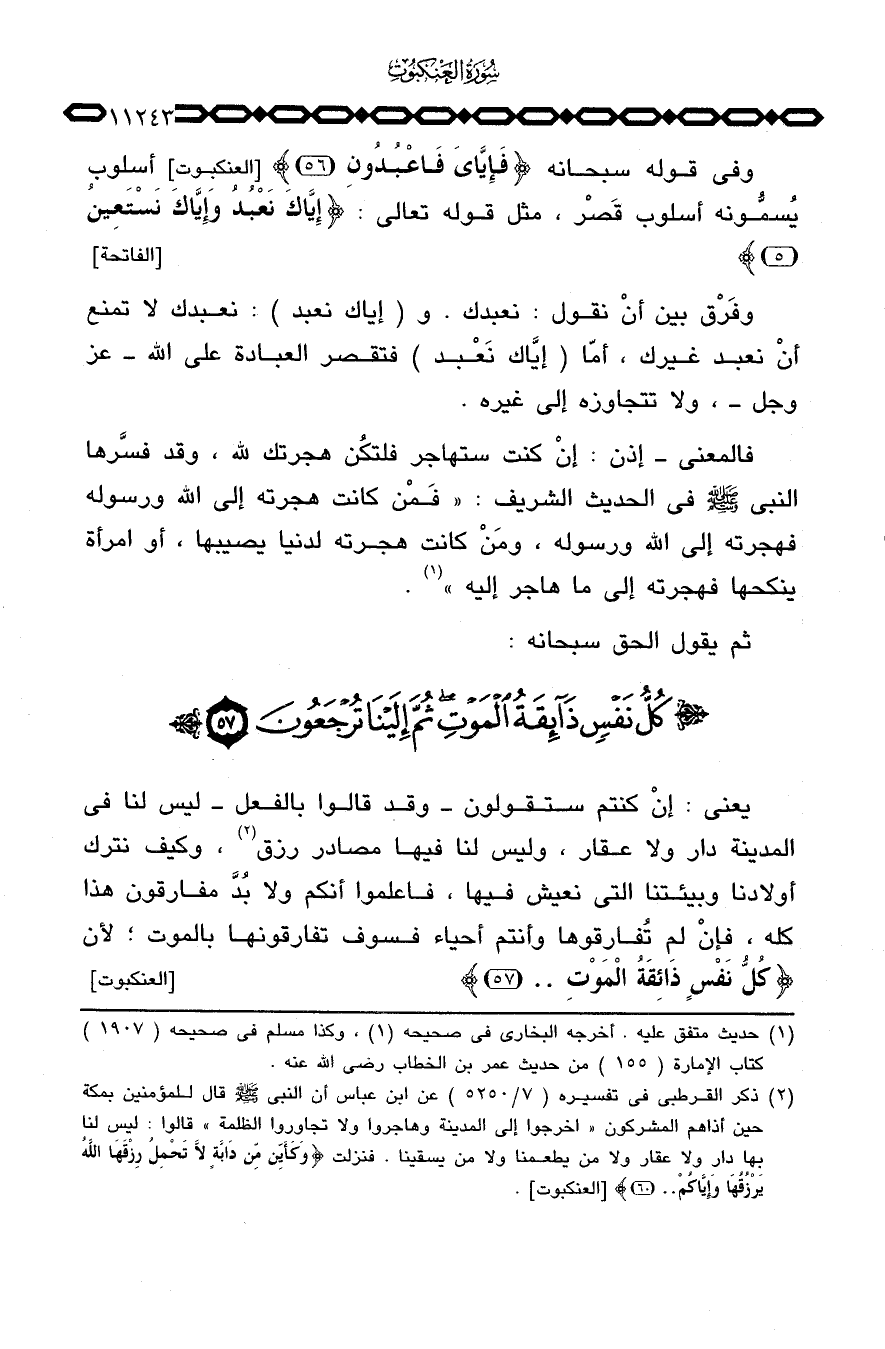 وفي قوله سبحانه {فَإِيَّايَ فاعبدون} [العنكبوت: 56] أسلوب يُسمُّونه أسلوب قَصْر، مثل قوله تعالى: {إِيَّاكَ نَعْبُدُ وَإِيَّاكَ نَسْتَعِينُ} [الفاتحة: 5] .