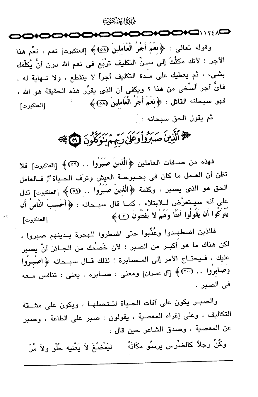 وقوله تعالى: {نِعْمَ أَجْرُ العاملين} [العنكبوت: 58] نعم، نعْم هذا الأجر؛ لأنك مكثْتَ إلى سِنَّ التكليف ترْبَع في نعم الله دون أنْ يُكلِّفك بشيء، ثم يعطيك على مدة التكليف أجراً لا ينقطع، ولا نهاية له، فأيُّ أجر أَسْخى من هذا؟ ويكفي أن الذي يقرِّر هذه الحقيقة هو الله، فهو سبحانه القائل: {نِعْمَ أَجْرُ العاملين} [العنكبوت: 58] .