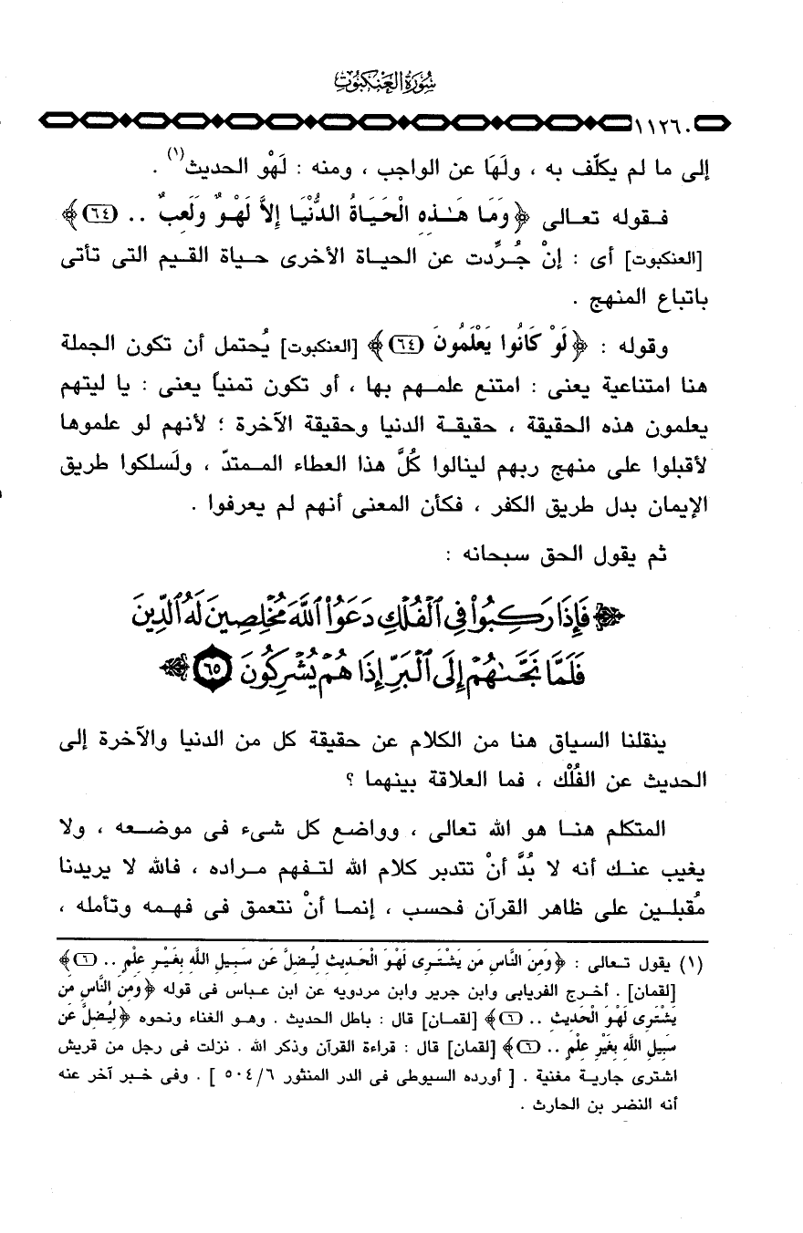 وقوله: {لَوْ كَانُواْ يَعْلَمُونَ} [العنكبوت: 64] يُحتمل أن تكون الجملة هنا امتناعية يعني: امتنع علمهم بها، أو تكون تمنياً يعني: يا ليتهم يعلمون هذه الحقيقة، حقيقة الدنيا وحقيقة الآخرة؛ لأنهم لو علموها لأقبلوا على منهج ربهم لينالوا كُلَّ هذا العطاء الممتدّ، ولَسلكوا طريق الإيمان بدل طريق الكفر، فكأن المعنى أنهم لم يعرفوا.