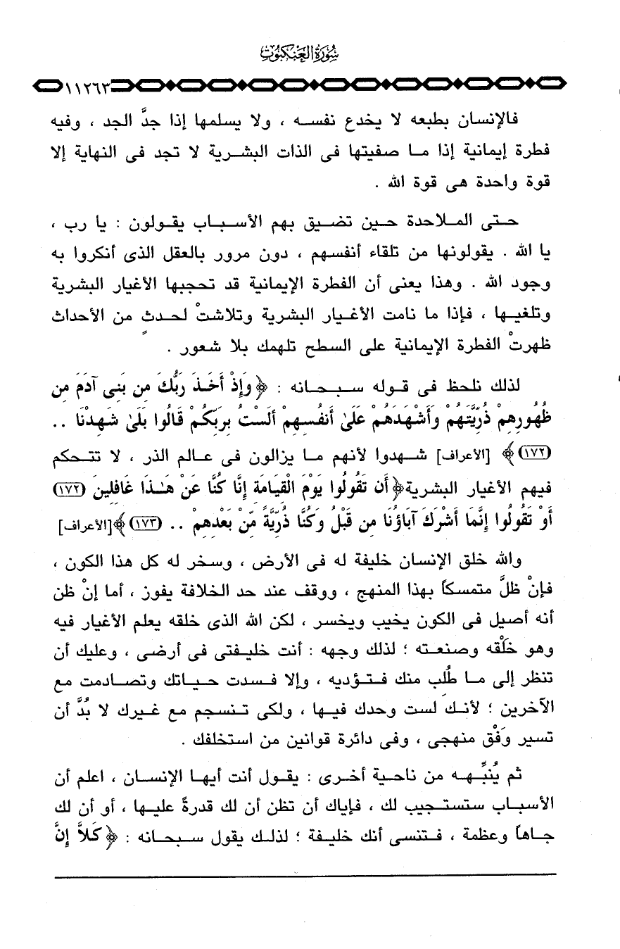 فالإنسان بطبعه لا يخدع نفسه، ولا يسلمها إذا جدَّ الجد، وفيه فطرة إيمانية إذا ما صفيتها في الذات البشرية لا تجد في النهاية إلا قوة واحدة هي قوة الله.
