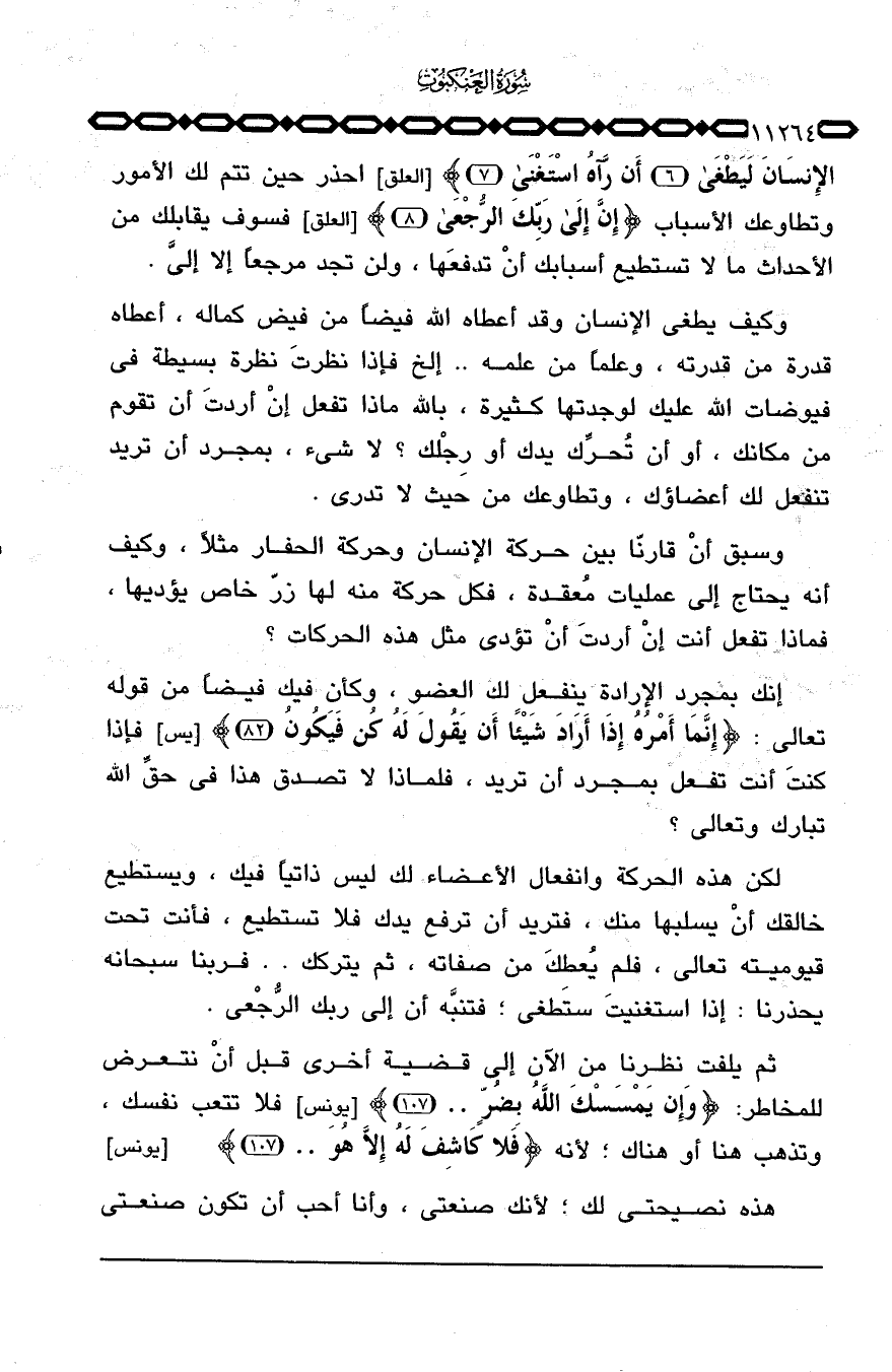 وكيف يطغى الإنسان وقد أعطاه الله فيضاً من فيض كماله، أعطاه قدرة من قدرته، وعلماً من علمه.