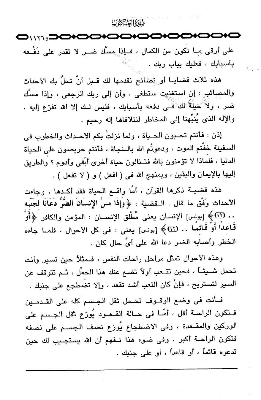 على أرقى ما تكون من الكمال، فإذا مسَّك ضر لا تقدر على دَفْعه بأسبابك، فعليك بباب ربك.