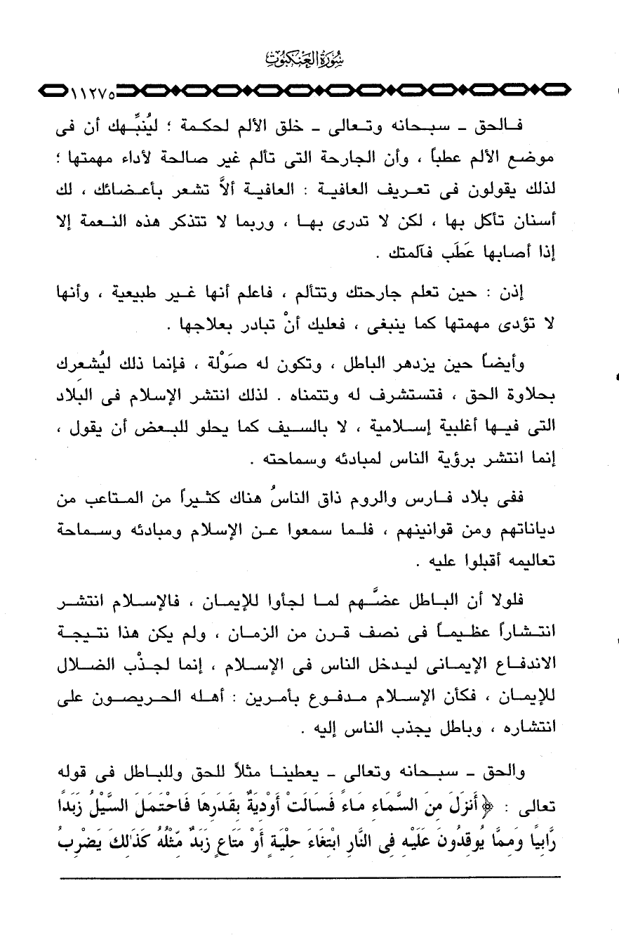 وأيضاً حين يزدهر الباطل، وتكون هل صَوْلة، فإنما ذلك ليُشعرك بحلاوة الحق، فتستشرف له وتتمناه. لذلك انتشر الإسلام في البلاد التي فيها أغلبية إسلامية، لا بالسيف كما يحلو للبعض أن يقول، إنما انتشر برؤية الناس لمبادئه وسماحته.