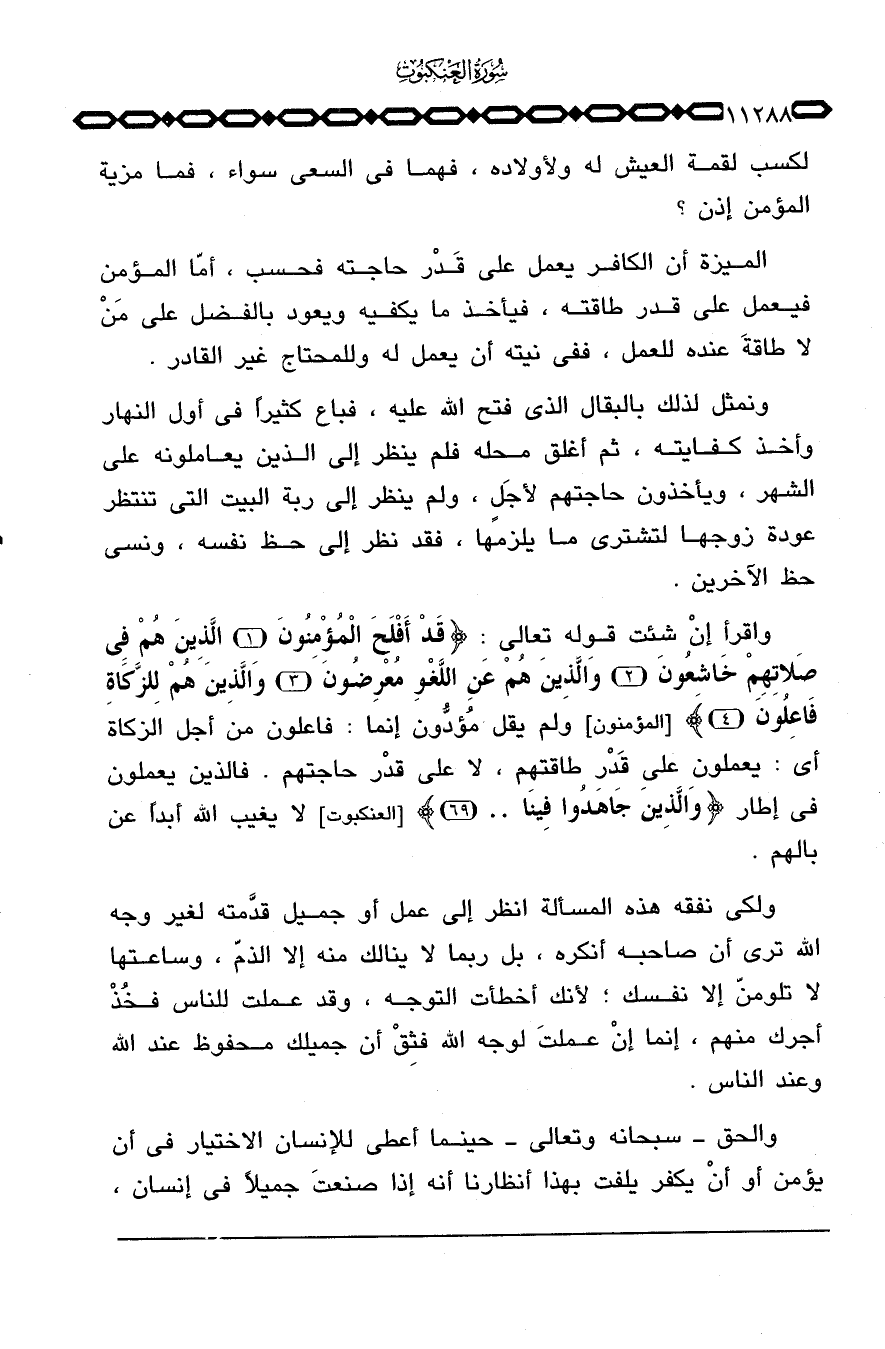 واقرأ إنْ شئت قوله تعالى: {قَدْ أَفْلَحَ المؤمنون الذين هُمْ فِي صَلاَتِهِمْ خَاشِعُونَ والذين هُمْ عَنِ اللغو مُّعْرِضُونَ والذين هُمْ لِلزَّكَاةِ فَاعِلُونَ} [المؤمنون: 1 - 4] ولم يقل مُؤدُّون إنما: فاعلون من أجل الزكاة أي: يعملون على قَدْر طاقتهم، لا على قدْر حاجتهم. فالذين يعملون في إطار {والذين جَاهَدُواْ فِينَا ... } [العنكبوت: 69] لا يغيب الله أبداً عن بالهم.