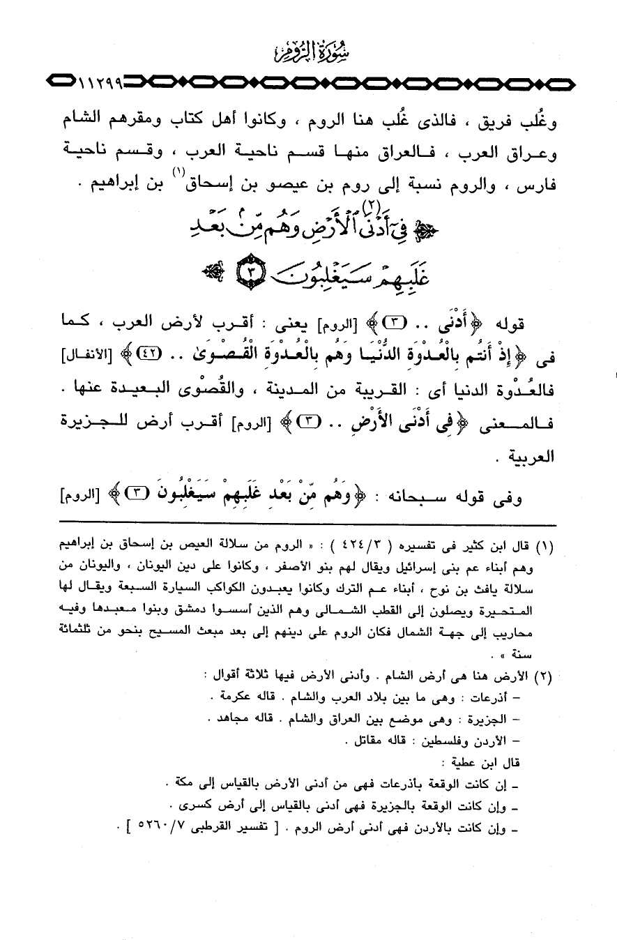 وغُلب فريق، فالذي غُلب هنا الروم، وكانوا أهل كتاب ومقرهم الشام وعراق العرب، فالعراق منها قسم ناحية العرب، وقسم ناحية فارس، والروم نسبة إلى روم بن عيصو بن إسحاق بن إبراهيم.